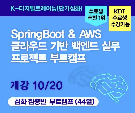 단기심화 조O환6개월 - 개발회사 다니다 심화과정 듣게 됬는데 짧은기간동안 수업과 팀프로젝트를 진행하며 듣게 되었는데,시간이 많이 부족했지만 팀원 전체가 힘을 합쳐 모두 함께 회의 부터 기능개발까지 많은 노력을 하여 최종적으로 좋은 결과물을 제출할 수 있어서 매우 많은것을 배울 수 있었고 뜻깊은 2개월이였습니다.