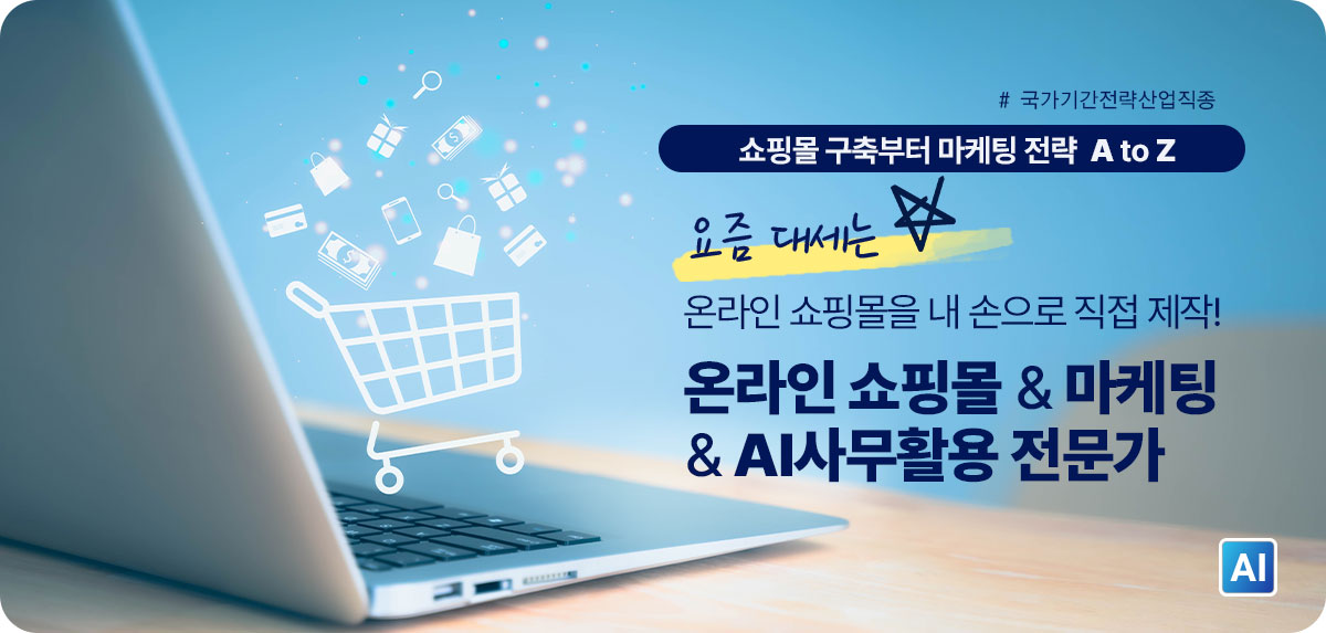 | 교육과정 | [AI worker] 코드로 배우는 스마트 스토어 구축 및 마케팅 | 교육일정 | 주간 09:00 ~ 17:40 |